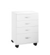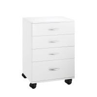 Elegante e moderno carrello di legno verniciato in bianco. Dotato di 4 cassetti per conservare gli accessori nei centri di bellezza. Totale mobilità grazie alle 4 ruote.